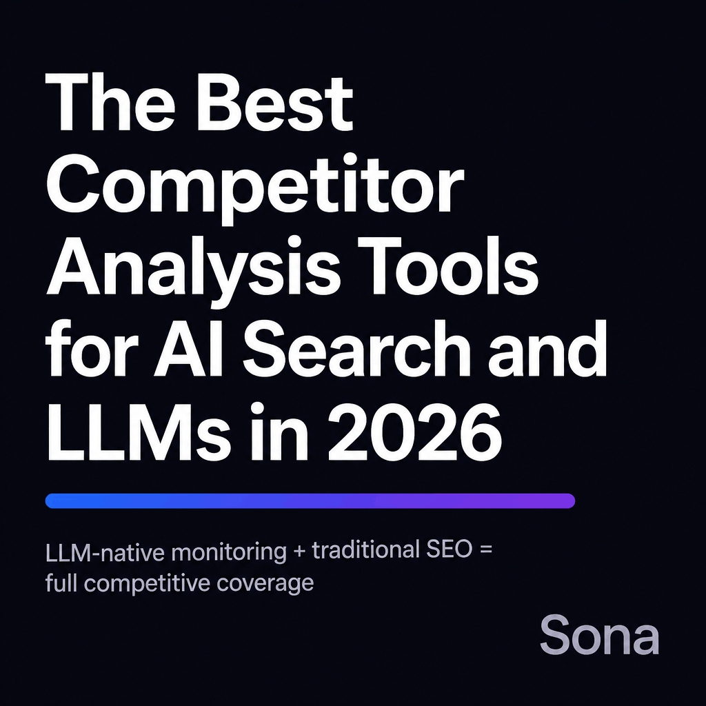 The best competitor analysis tools for AI search and LLMs in 2026 combine LLM-native query monitoring (Analyze AI, Profound, Nightwatch) with traditional keyword gap analysis (Ahrefs, Semrush) because AI citation share-of-voice and Google SERP rankings are now two separate competitive battlegrounds. Before benchmarking competitors, run a Sona AI Visibility audit to establish your own AI search baseline. It's free and completes in under 30 seconds.