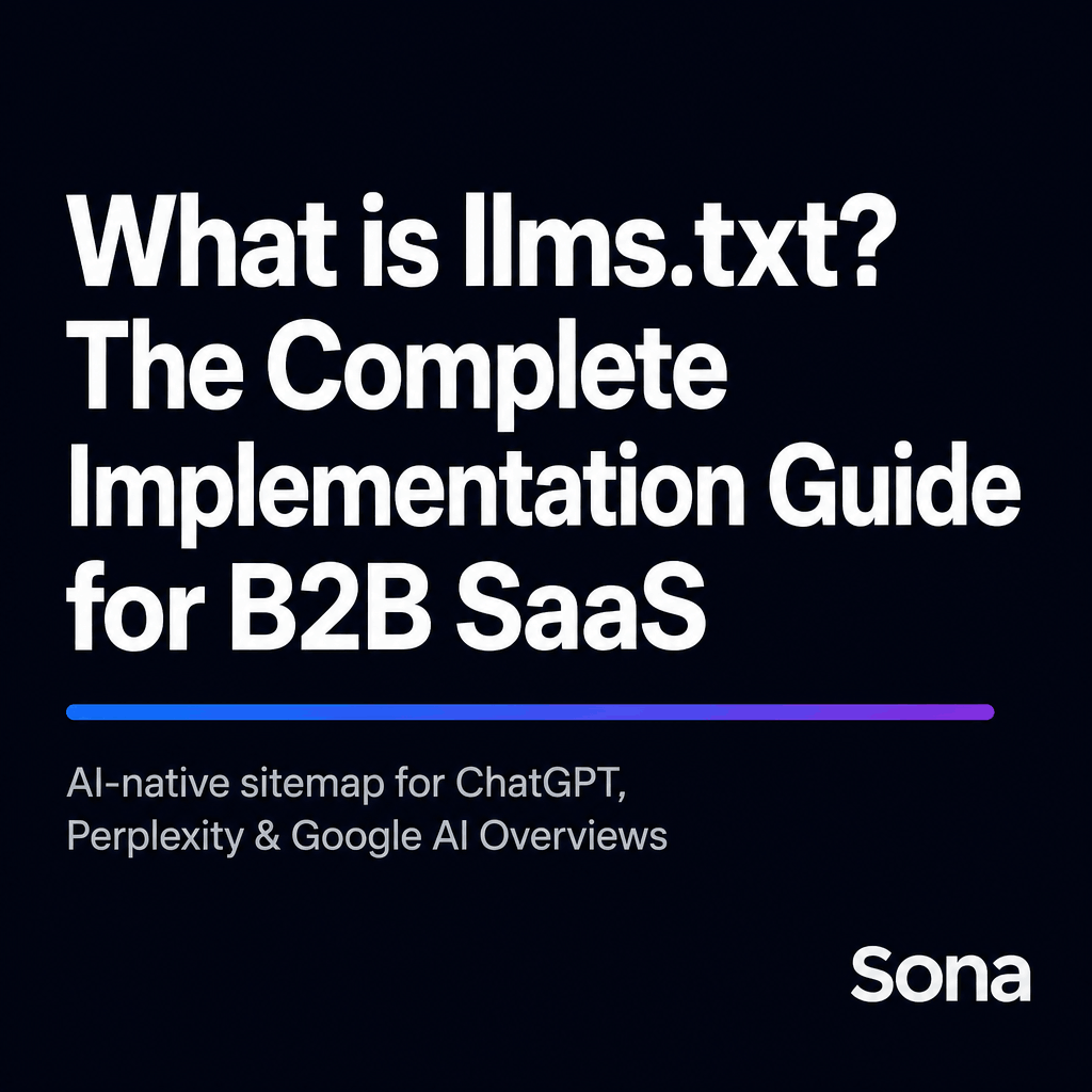The practical sequence for a B2B SaaS site: fix robots.txt and GPTBot access first, add schema markup second, implement llms.txt third, and create llms-full.txt if you have extensive documentation. Run a free audit at Sona AI Visibility before starting to identify which steps actually apply to your site.