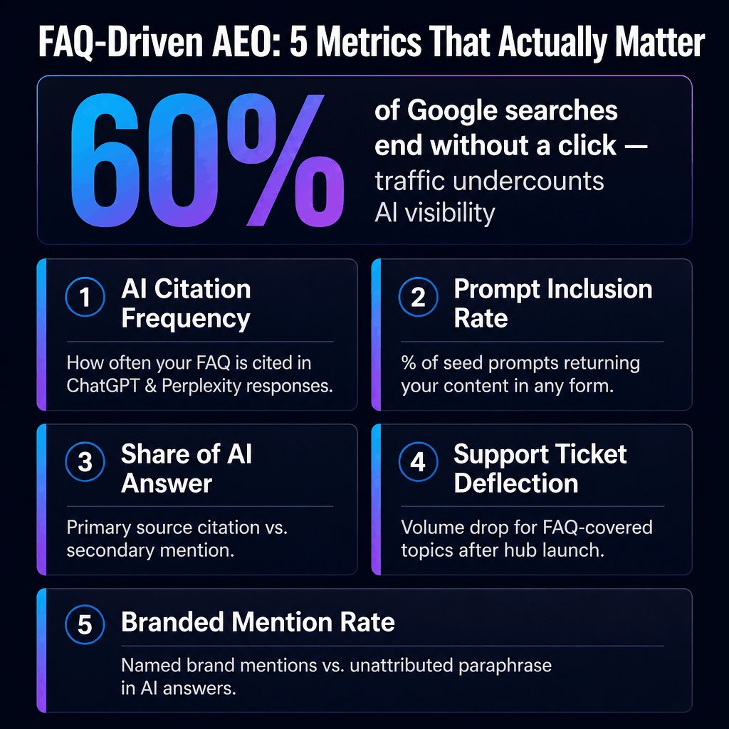 Five metrics that actually measure FAQ-driven AEO performance: